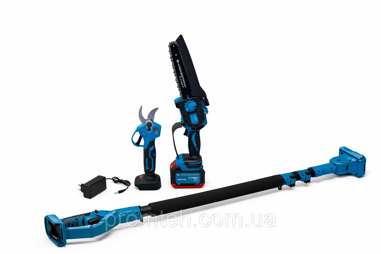 Міні-пила, секатор (25 мм), подовжувач (2.5 м) та акум. 6000 мАг KRAISSMANN
